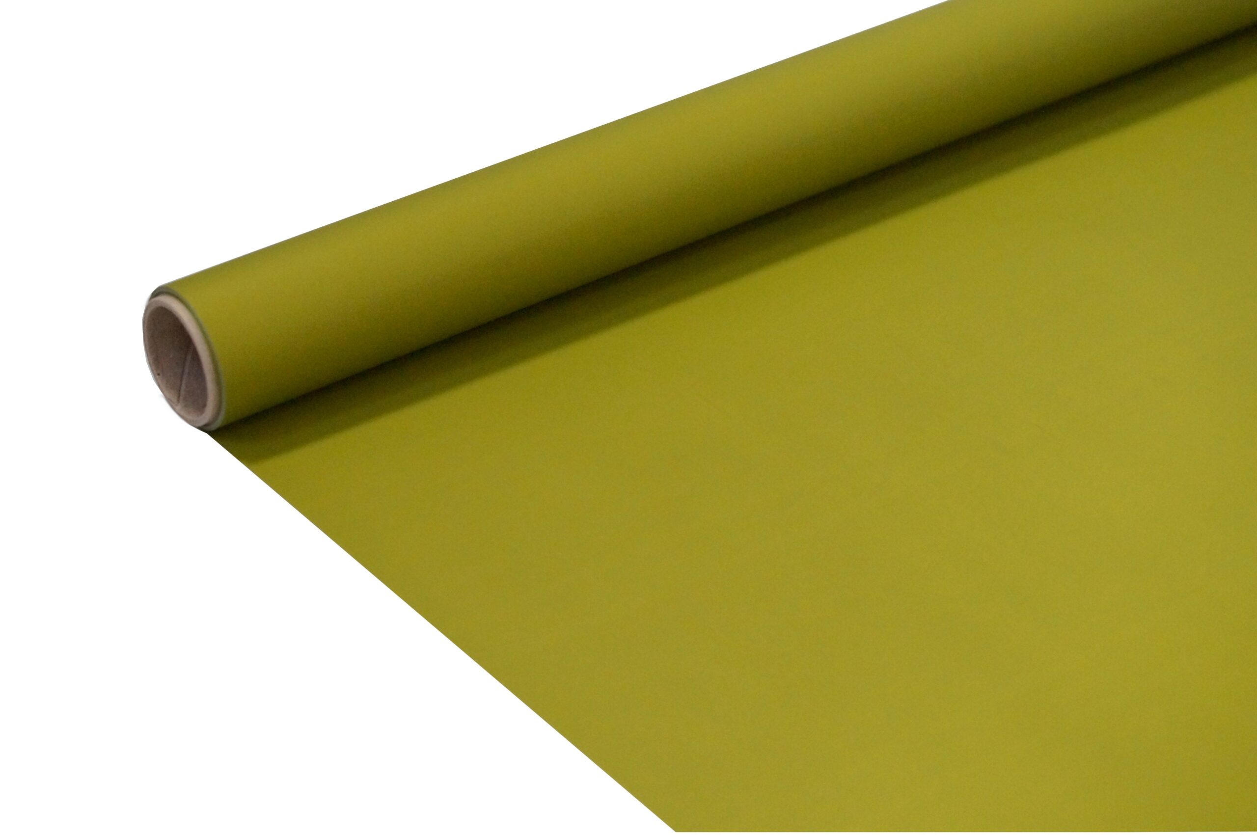 Folia satynowa, gładka, w kolorze oliwkowym. Nawinięta na wałek o szerokości 50cm, długość całkowita 10 Yard.