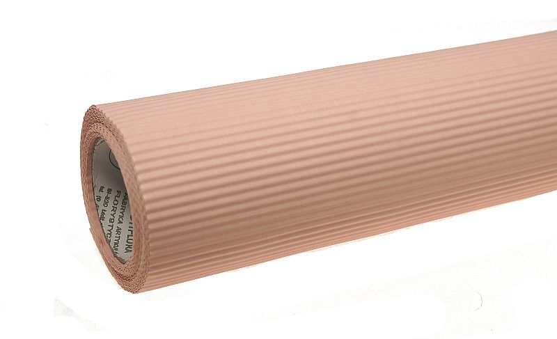 Papier karbowany w kolorze jasnego różu nawinięty na rolkę o szerokości 50cm. Długość papieru wynosi 10m.
