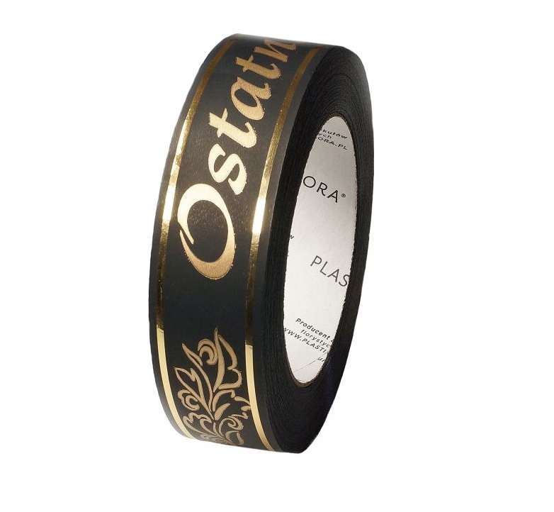 Czarna taśma ze złotym napisem ”Ostatnie pożegnanie” do wiązanek pogrzebowych. Wymiary 3 cm x 45 m. Nada każdej wiązance, eleganckiego charakteru. W swojej ofercie posiadamy wiele taśm żałobnych o rożnych wymiarach i wzorach. Będą one dobrym dopełnieniem zarówno dużych wiązanek jak i pojedynczych kwiatów.