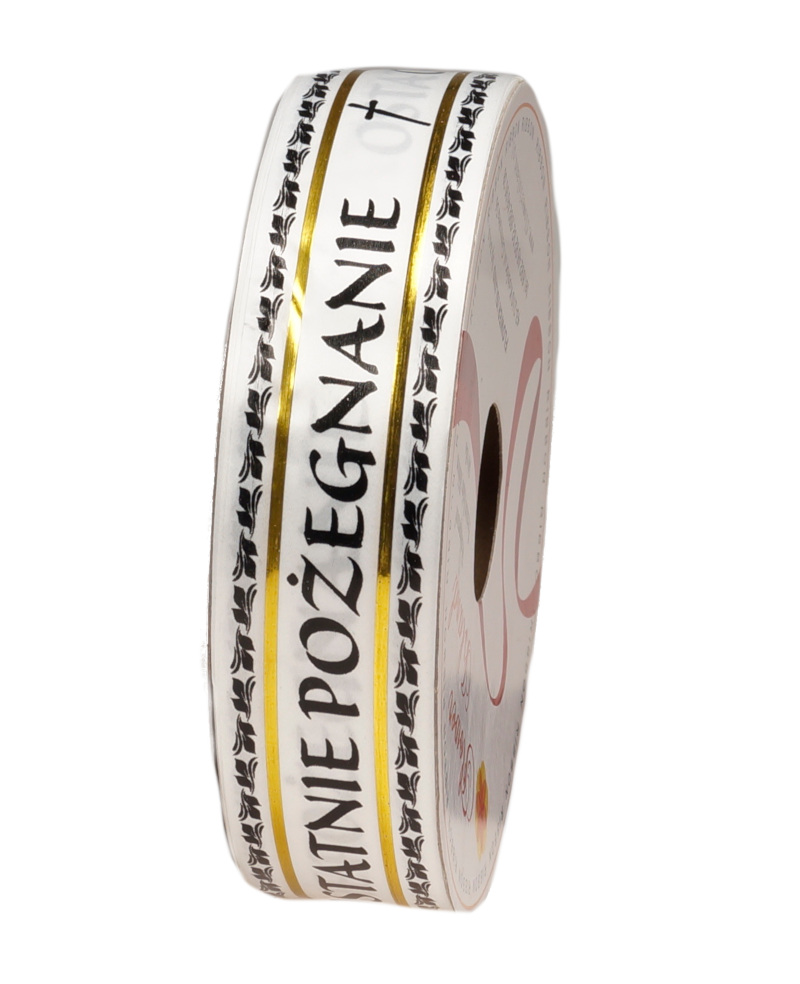 Taśma pogrzebowa z napisem 3 cm x 45 m – biało-czarno-złota