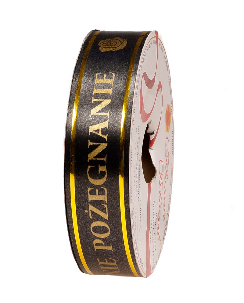 Taśma pogrzebowa z napisem 3 cm x 45 m – czarno-złota